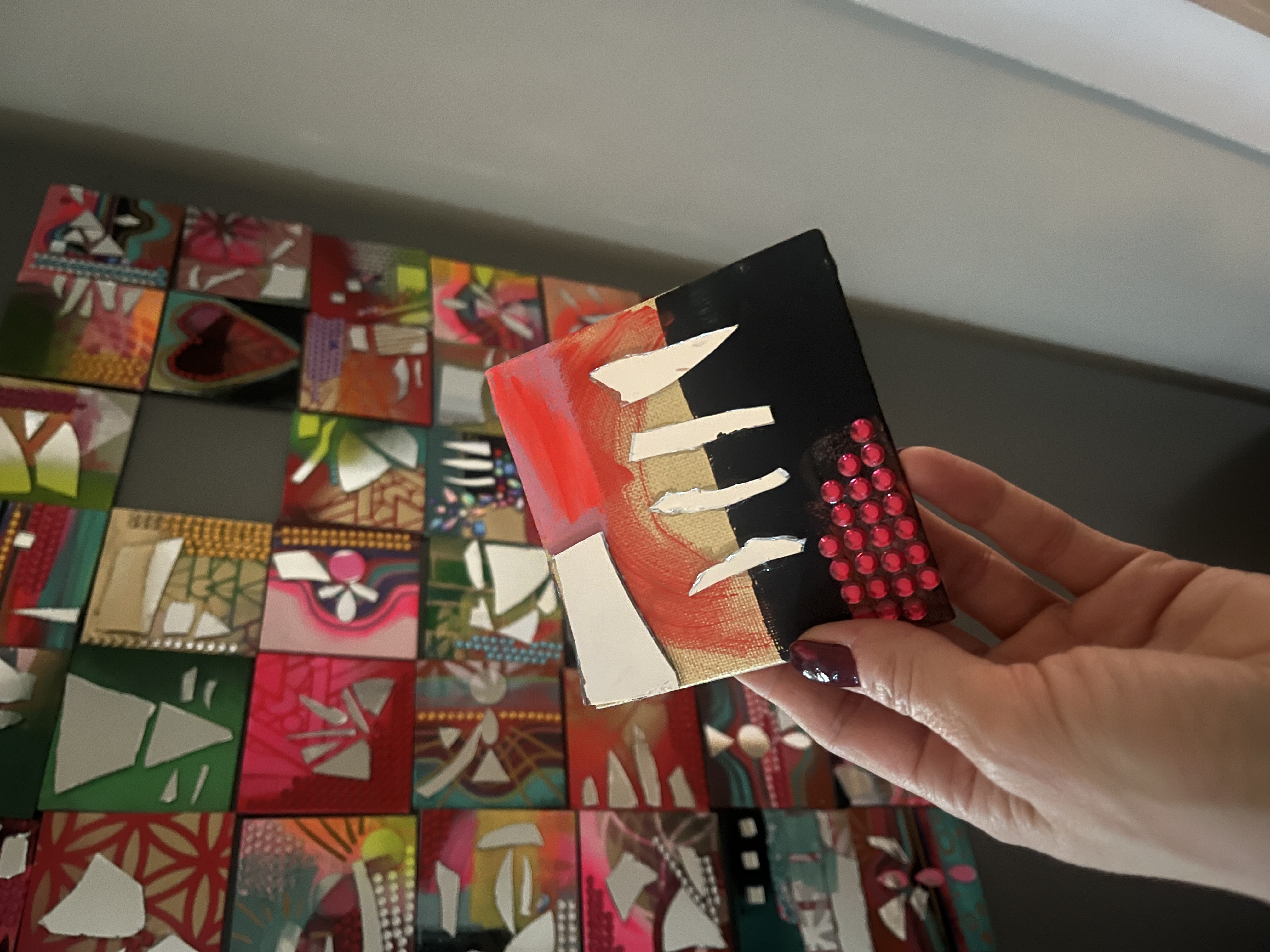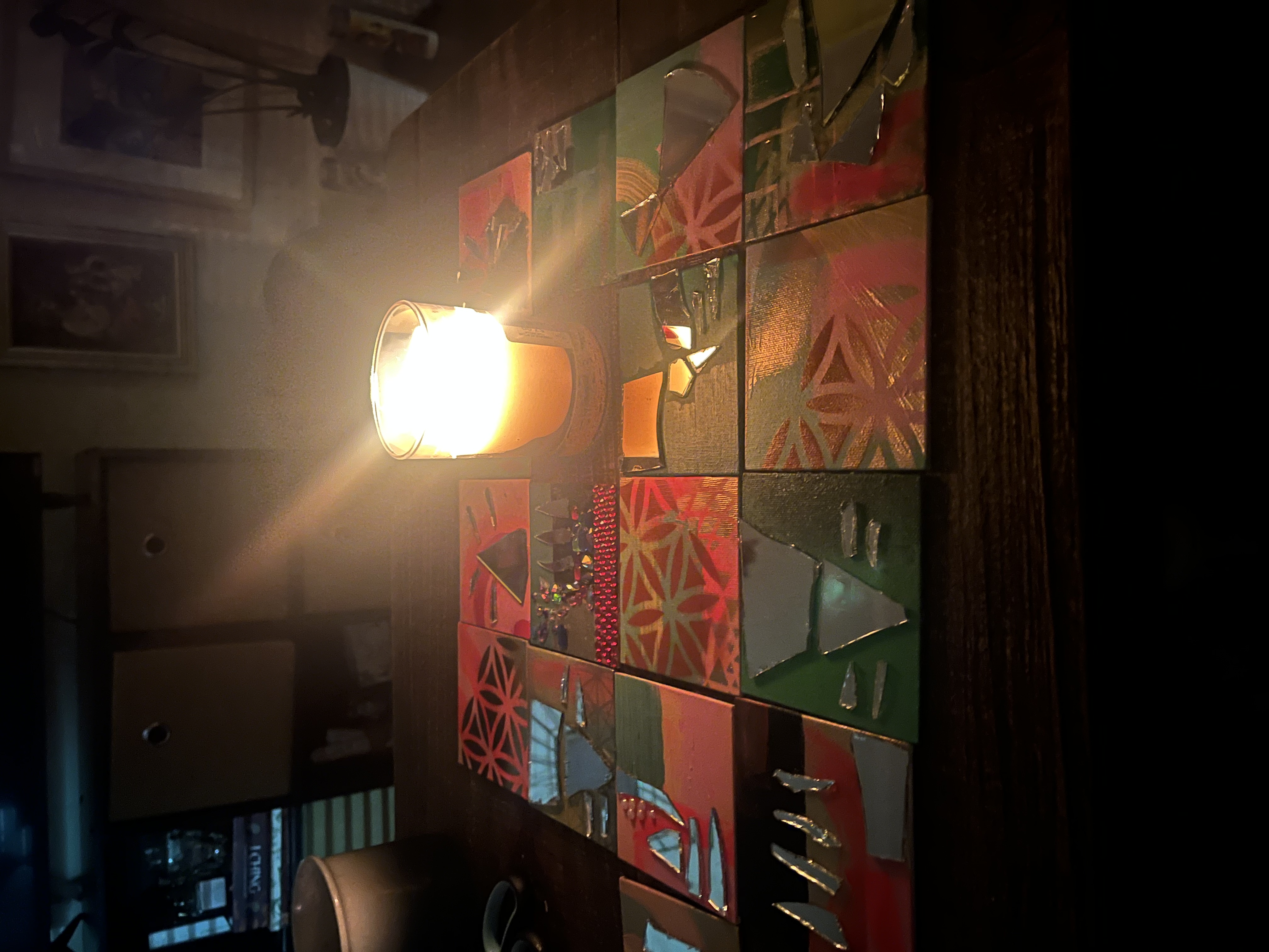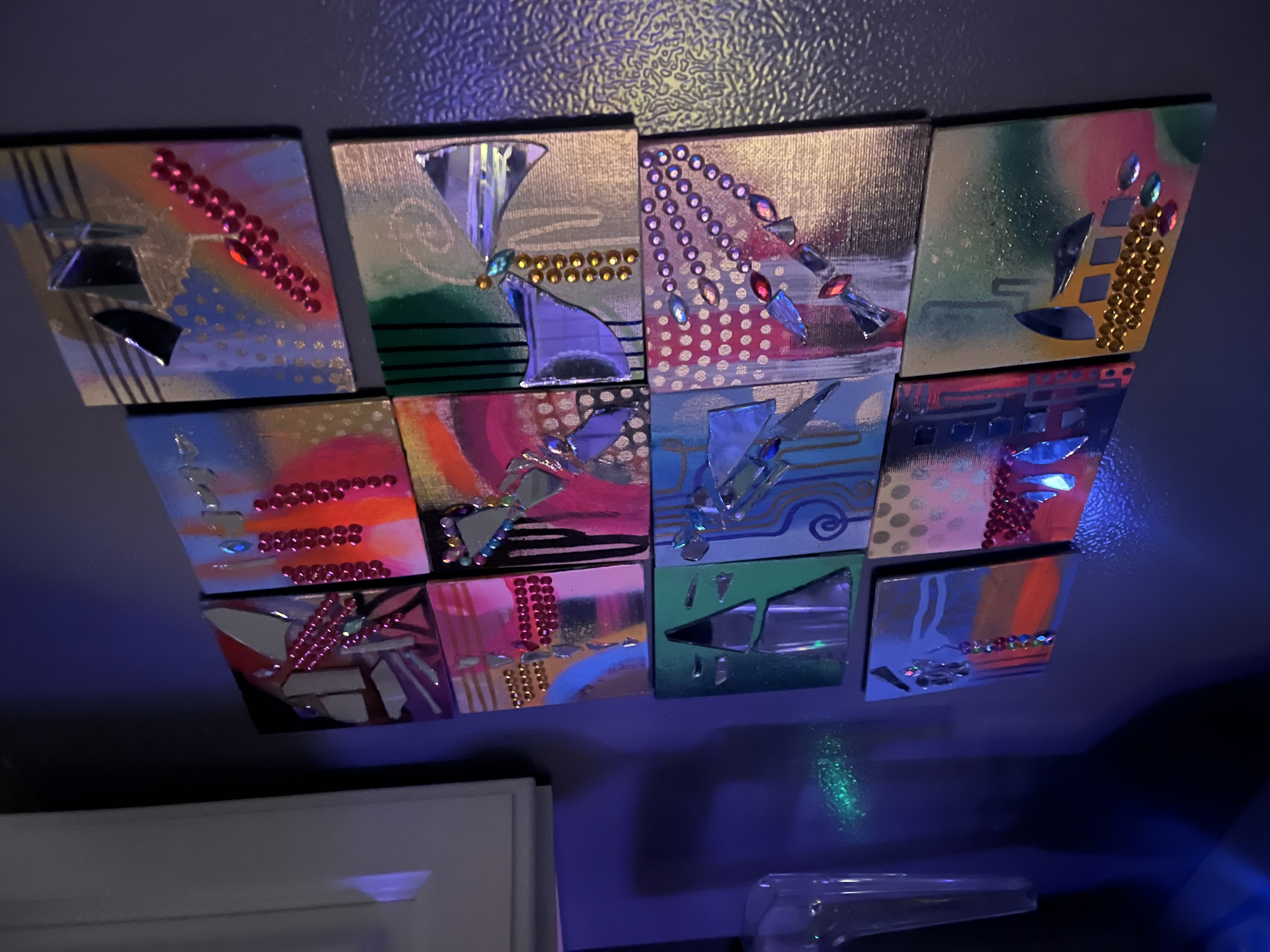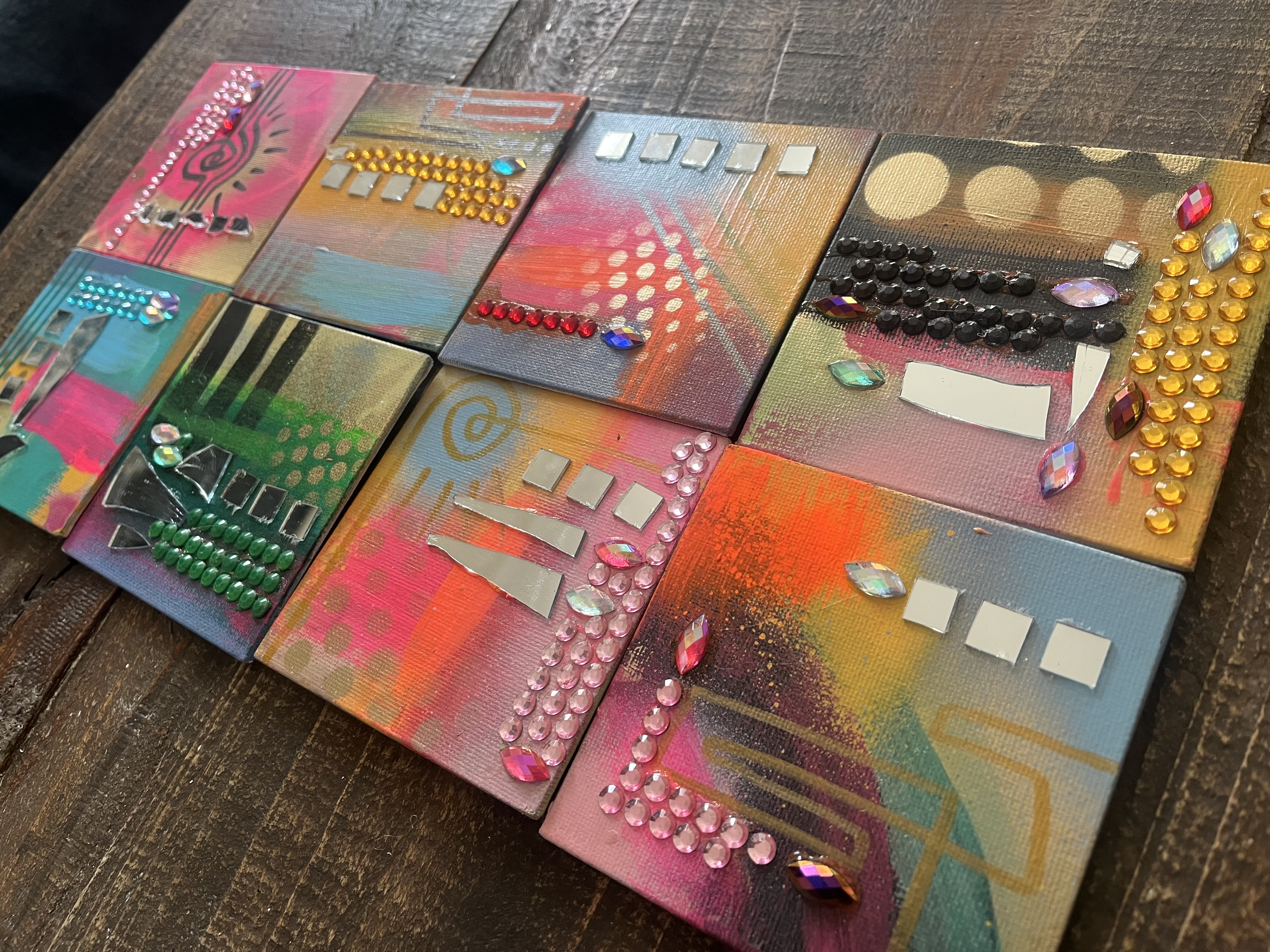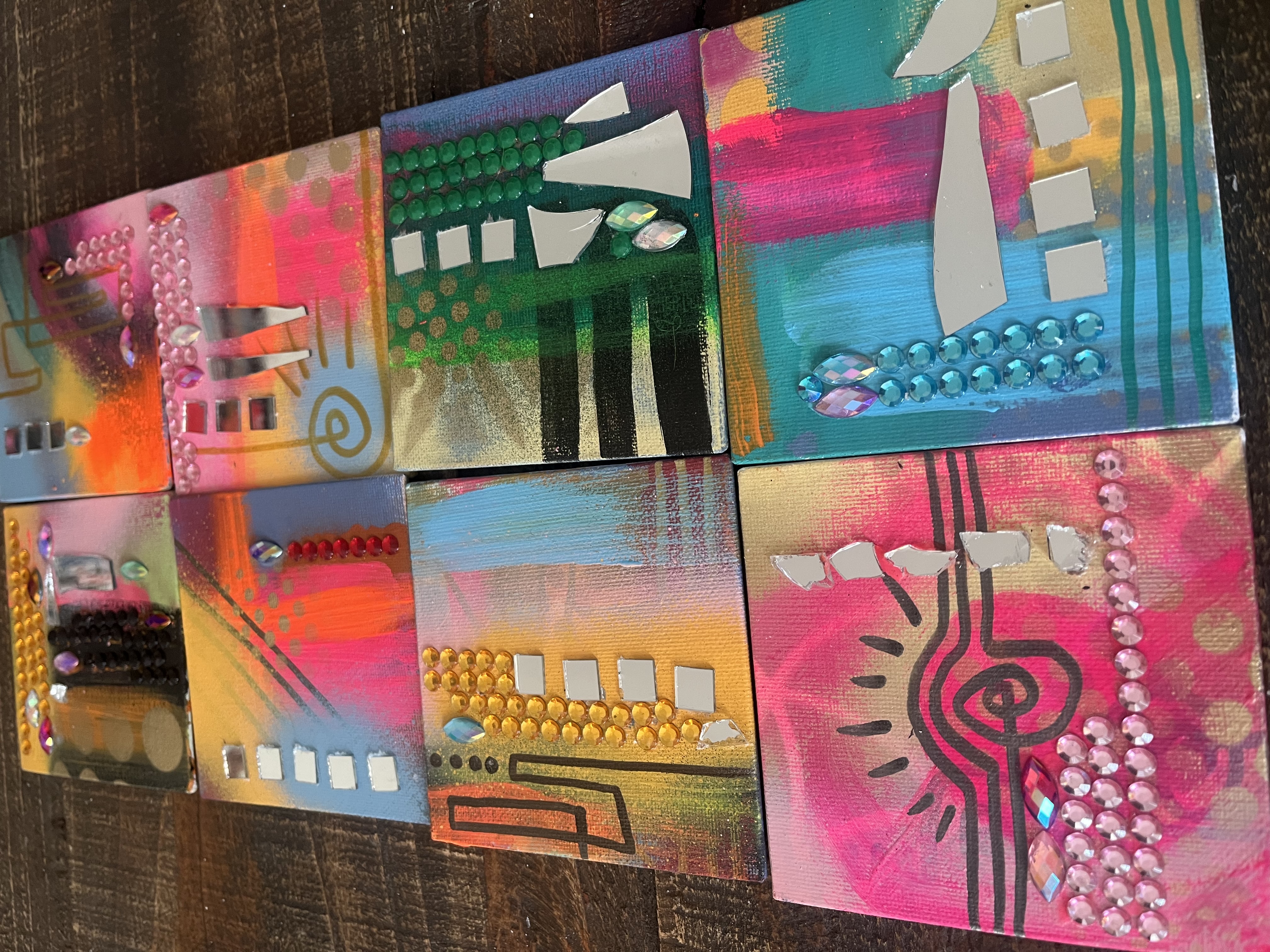 Feeling called to work with paint and brush. Getting away from the screen and back to basics. (Yes, I still do logos and custom illustration) but lateley I've been paying homage to my inner juvenile delinquent;) Working with broken mirrors, spray paint and sparkly rhinestones has been a meditation of sorts. Revisiting the days of art for joy.